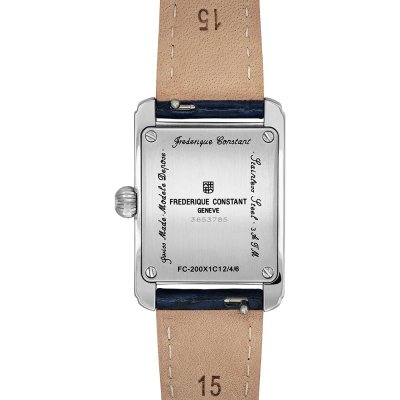 Diese Frederique Constant Uhr hat ein Edelstahl Gehäuse mit einem Durchmesser von 21 mm und ist mit einem Armband aus Leder versehen. In der Uhr arbeitet ein Ronda Uhrwerk. Das Glas der Uhr besteht aus Sapphir - Glas.