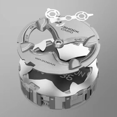 Manchmal denkt man, dass es im 21. Jahrhundert nichts mehr an Uhren zu verbessern gibt, aber dann hat man nicht auf G-Shock geachtet. Nach vierzig Jahren ständiger Innovation ist es der Marke wieder einmal gelungen, die Uhrenwelt mit einem völlig einzigartigen und originellen Design zu revolutionieren. Mit einem völlig neuen Ansatz bei Konstruktion und Design hat die GA-V01 nicht nur ein spektakuläres Aussehen, sondern ist auch äußerst stoßfest und birgt bemerkenswerte technische Innovationen: Die Gehäusekonstruktion, die das Uhrwerk schützt, nutzt eine integrierte Lünetten- und Armbandkonstruktion, die das Glas teilweise überlappt und somit auch als Stoßdämpfer fungiert, um Stöße zu absorbieren. Casio hat auch eine neue magnetische Zeigerkonstruktion entwickelt, bei der die Zeiger, die normalerweise anfällig für Stöße sind, nicht an der Achse befestigt sind, sondern durch Magnetkraft gehalten werden. Dadurch können sie Stöße effektiv absorbieren und ableiten. Diese neue Technologie ermöglicht auch die Herstellung größerer, einzigartig geformter Zeiger, da die Achse ihr Gewicht nicht tragen muss. Nach einem Stoß oder einer Erschütterung können die Zeiger vorübergehend aus ihrer Position geraten, aber innerhalb weniger Minuten kehren sie auf fast magische Weise in ihre ursprüngliche Position zurück. Das analog-digitale Zifferblatt ist mehrschichtig aufgebaut und besteht aus einem Metallzifferblatt mit Gitterelementen, die dekorative Einblicke ins Innere gewähren, und einem LCD-Display. Diese Uhr ist nichts für Risikoscheue. Sie ist auffällig, groß und sorgt garantiert für Gesprächsstoff! Und Sie können sich darauf verlassen, dass das robuste und leistungsstarke Uhrwerk trotz aller Stöße und Erschütterungen immer funktioniert!