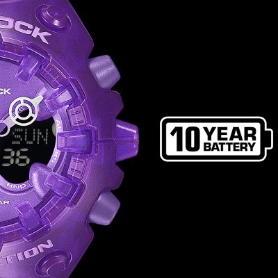 Manchmal denkt man, dass es im 21. Jahrhundert nichts mehr an Uhren zu verbessern gibt, aber dann hat man nicht auf G-Shock geachtet. Nach vierzig Jahren ständiger Innovation ist es der Marke wieder einmal gelungen, die Uhrenwelt mit einem völlig einzigartigen und originellen Design zu revolutionieren. Mit einem völlig neuen Ansatz bei Konstruktion und Design hat die GA-V01 nicht nur ein spektakuläres Aussehen, sondern ist auch äußerst stoßfest und birgt bemerkenswerte technische Innovationen: Die Gehäusekonstruktion, die das Uhrwerk schützt, nutzt eine integrierte Lünetten- und Armbandkonstruktion, die das Glas teilweise überlappt und somit auch als Stoßdämpfer fungiert, um Stöße zu absorbieren. Casio hat auch eine neue magnetische Zeigerkonstruktion entwickelt, bei der die Zeiger, die normalerweise anfällig für Stöße sind, nicht an der Achse befestigt sind, sondern durch Magnetkraft gehalten werden. Dadurch können sie Stöße effektiv absorbieren und ableiten. Diese neue Technologie ermöglicht auch die Herstellung größerer, einzigartig geformter Zeiger, da die Achse ihr Gewicht nicht tragen muss. Nach einem Stoß oder einer Erschütterung können die Zeiger vorübergehend aus ihrer Position geraten, aber innerhalb weniger Minuten kehren sie auf fast magische Weise in ihre ursprüngliche Position zurück. Das analog-digitale Zifferblatt ist mehrschichtig aufgebaut und besteht aus einem Metallzifferblatt mit Gitterelementen, die dekorative Einblicke ins Innere gewähren, und einem LCD-Display. Diese Uhr ist nichts für Risikoscheue. Sie ist auffällig, groß und sorgt garantiert für Gesprächsstoff! Und Sie können sich darauf verlassen, dass das robuste und leistungsstarke Uhrwerk trotz aller Stöße und Erschütterungen immer funktioniert!