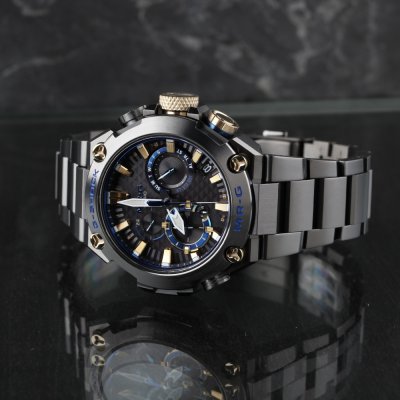 Die MRG-B2000B-1A und MRG-B2000R-1A haben eine blaue Akzentfarbe, die von der traditionellen japanischen Farbe "kachi-iro" inspiriert ist, die den Sieg symbolisiert. Neben der blauen Farbe, die häufig für Samurai-Rüstungen und -Helme verwendet wurde, gibt es noch viele weitere Anspielungen auf japanische Traditionen: Die Oberfläche des Zifferblatts ist mit einem abwechselnden dreieckigen Muster verziert, das als Uroko oder Fischschuppe bekannt ist und in der alten japanischen Kunst und bei Gebrauchsgegenständen vorkommt. Der äußere Ring des Zifferblatts weist eine gerippte Struktur auf, die von dem Faltmuster japanischer Fächer inspiriert ist. Und die Stundenmarkierungen haben eine leicht konkave Form, die die Kurve eines Katana (Schwert) nachahmt. Beide Modelle werden in Japan in der Premium-Produktionslinie der Yamagato Casio-Fabrik hergestellt.