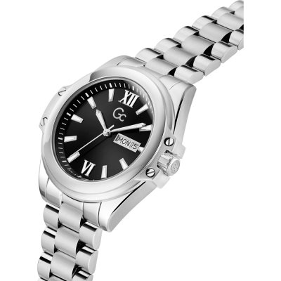 Diese GC Uhr hat ein Edelstahl Gehäuse mit einem Durchmesser von 43 mm und ist mit einem Armband aus Edelstahl versehen.
