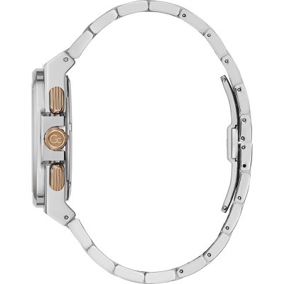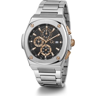 Diese GC Uhr hat ein Edelstahl Gehäuse mit einem Durchmesser von 44 mm und ist mit einem Armband aus Edelstahl versehen. In der Uhr arbeitet ein Ronda Uhrwerk. Das Glas der Uhr besteht aus Saphirbeschichtetes Mineralglas - Glas.