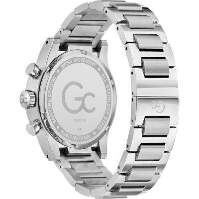 Diese GC Uhr hat ein Edelstahl Gehäuse mit einem Durchmesser von 42 mm und ist mit einem Armband aus Edelstahl versehen. In der Uhr arbeitet ein Ronda Uhrwerk. Das Glas der Uhr besteht aus Sapphir - Glas.