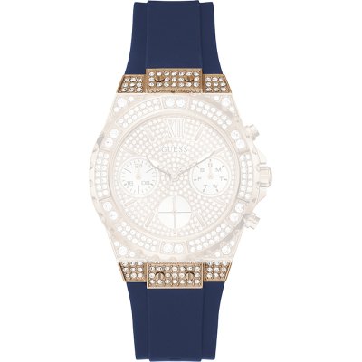 Dieses Guess Uhrarmband ist aus silikon/Kautschuk gefertigt und wird mit druckstifte an der Uhr befestigt. Das Band hat eine Breite von 23 mm und wird mit einer dornschließe geschlossen. Das Uhrenarmband hat keine gerade Halterung, was bedeutet, dass dieses Band nur für die unten aufgeführten Uhren geeignet ist.