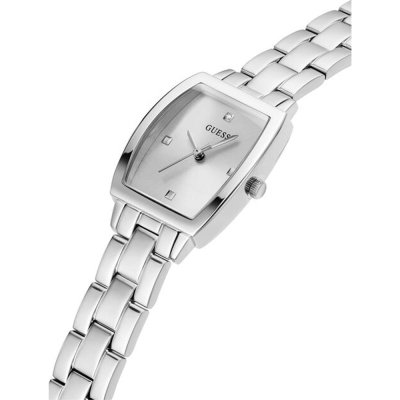 Diese Guess Uhr hat ein Edelstahl Gehäuse mit einem Durchmesser von 25 mm und ist mit einem Armband aus Edelstahl versehen. In der Uhr arbeitet ein Seiko Uhrwerk. Das Glas der Uhr besteht aus Mineral - Glas.