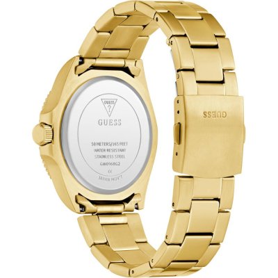Diese Guess Uhr hat ein Edelstahl Gehäuse mit einem Durchmesser von 41 mm und ist mit einem Armband aus Edelstahl versehen. In der Uhr arbeitet ein Seiko Uhrwerk. Das Glas der Uhr besteht aus Mineral - Glas.