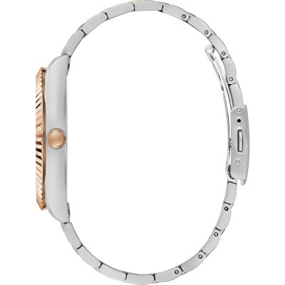 Diese Guess Uhr hat ein Edelstahl Gehäuse mit einem Durchmesser von 42 mm und ist mit einem Armband aus Edelstahl versehen. In der Uhr arbeitet ein Seiko Instruments Inc. Uhrwerk. Das Glas der Uhr besteht aus Mineral - Glas.