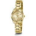 Diese Guess Uhr hat ein Edelstahl Gehäuse mit einem Durchmesser von 30 mm und ist mit einem Armband aus Edelstahl versehen. In der Uhr arbeitet ein Seiko Uhrwerk. Das Glas der Uhr besteht aus Mineral - Glas.