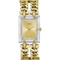 Diese Guess Uhr hat ein Kunstharz Gehäuse mit einem Durchmesser von 29 mm und ist mit einem Armband aus Edelstahl versehen.