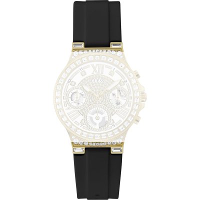 Dieses Guess Uhrarmband ist aus silikon gefertigt und wird mit druckstifte an der Uhr befestigt. Das Band hat eine Breite von 20 mm und wird mit einer dornschließe geschlossen. Das Uhrenarmband hat keine gerade Halterung, was bedeutet, dass dieses Band nur für die unten aufgeführten Uhren geeignet ist.