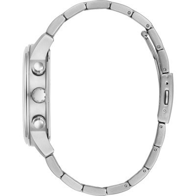 Diese Guess Uhr hat ein Edelstahl Gehäuse mit einem Durchmesser von 44 mm und ist mit einem Armband aus Edelstahl versehen. In der Uhr arbeitet ein Seiko Instruments Inc. Uhrwerk. Das Glas der Uhr besteht aus Mineral - Glas.