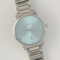 Diese Hugo Boss Uhr hat ein Edelstahl Gehäuse mit einem Durchmesser von 41 mm und ist mit einem Armband aus Edelstahl versehen. In der Uhr arbeitet ein Seiko Instruments Inc. Uhrwerk. Das Glas der Uhr besteht aus Mineral - Glas.