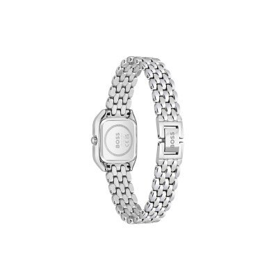 Diese Hugo Boss Uhr hat ein Edelstahl Gehäuse mit einem Durchmesser von 22 mm und ist mit einem Armband aus Edelstahl versehen. In der Uhr arbeitet ein Seiko Instruments Inc. Uhrwerk. Das Glas der Uhr besteht aus Mineral - Glas.