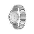 Diese Hugo Boss Uhr hat ein Edelstahl Gehäuse mit einem Durchmesser von 41 mm und ist mit einem Armband aus Edelstahl versehen. In der Uhr arbeitet ein Seiko Instruments Inc. Uhrwerk. Das Glas der Uhr besteht aus Mineral - Glas.