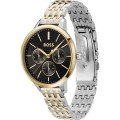 Diese Hugo Boss Uhr hat ein Edelstahl Gehäuse mit einem Durchmesser von 38 mm und ist mit einem Armband aus Edelstahl versehen. In der Uhr arbeitet ein Miyota Uhrwerk. Das Glas der Uhr besteht aus Mineral - Glas.