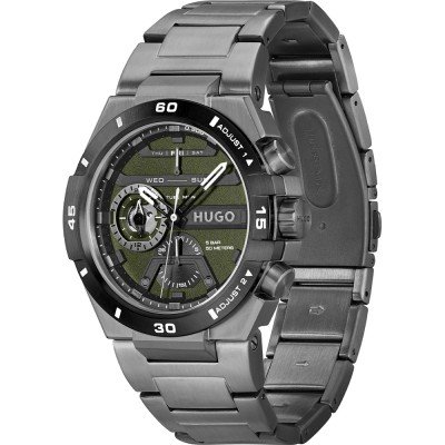 Diese Hugo Boss Uhr hat ein Edelstahl Gehäuse mit einem Durchmesser von 46 mm und ist mit einem Armband aus Edelstahl versehen. In der Uhr arbeitet ein Seiko Instruments Inc. Uhrwerk. Das Glas der Uhr besteht aus Mineral - Glas.