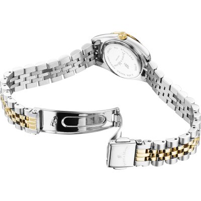 Diese Jacques du Manoir Uhr hat ein Edelstahl Gehäuse mit einem Durchmesser von 22 mm und ist mit einem Armband aus Edelstahl versehen. In der Uhr arbeitet ein Ronda Uhrwerk. Das Glas der Uhr besteht aus Mineral - Glas.