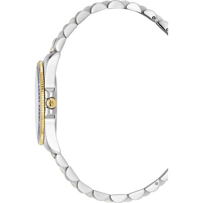 Diese Jacques du Manoir Uhr hat ein Edelstahl Gehäuse mit einem Durchmesser von 33 mm und ist mit einem Armband aus Edelstahl versehen. In der Uhr arbeitet ein Ronda Uhrwerk. Das Glas der Uhr besteht aus Mineral - Glas.