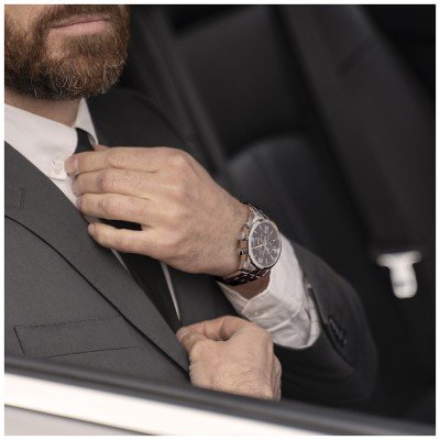 Diese Jaguar Uhr hat ein Edelstahl Gehäuse mit einem Durchmesser von 41 mm und ist mit einem Armband aus Edelstahl versehen. In der Uhr arbeitet ein Ronda Uhrwerk. Das Glas der Uhr besteht aus Sapphir - Glas.