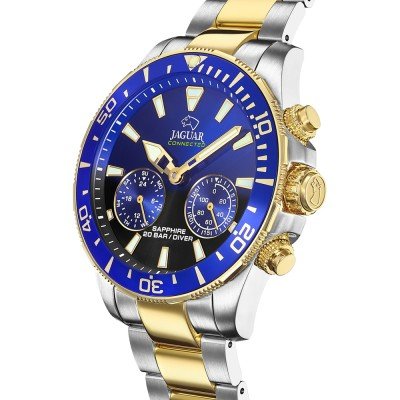 Diese Jaguar Uhr hat ein Edelstahl Gehäuse mit einem Durchmesser von 45 mm und ist mit einem Armband aus Edelstahl versehen. In der Uhr arbeitet ein Kronaby Uhrwerk. Das Glas der Uhr besteht aus Sapphir - Glas.