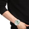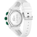 Diese Lacoste Uhr hat ein Kunstharz Gehäuse mit einem Durchmesser von 45 mm und ist mit einem Armband aus Kautschuk versehen. In der Uhr arbeitet ein Seiko Uhrwerk. Das Glas der Uhr besteht aus Mineral - Glas.