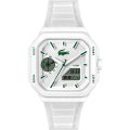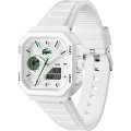 Diese Lacoste Uhr hat ein Kunstharz Gehäuse mit einem Durchmesser von 44 mm und ist mit einem Armband aus Kautschuk versehen. In der Uhr arbeitet ein Bao Jie Uhrwerk. Das Glas der Uhr besteht aus Mineral - Glas.