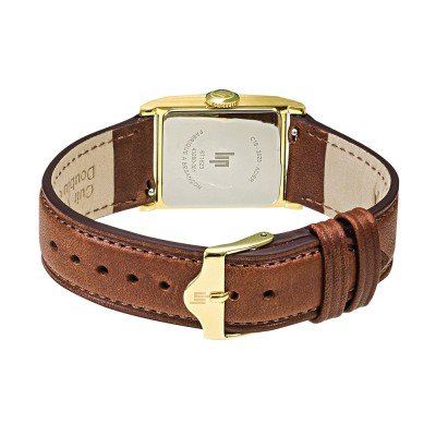 Diese LIP Uhr hat ein Edelstahl Gehäuse mit einem Durchmesser von 21 mm und ist mit einem Armband aus Leder versehen. In der Uhr arbeitet ein Ronda Uhrwerk. Das Glas der Uhr besteht aus Mineral - Glas.
