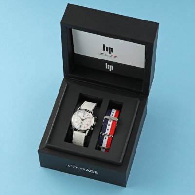Die LIP Courage wurde in Zusammenarbeit mit der Fédération Nationale des Sapeurs-Pompiers de France (FNSPF) entwickelt. Die Uhr ist nicht nur eine normale Uhr, sondern kann auch als Entscheidungshilfe für Feuerwehrleute, Ärzte, Pflegepersonal und Ersthelfer verwendet werden. Das Chronographenwerk mit Doppelzeiger misst den Herzschlag auf der roten Skala und die Atmung auf der blauen Skala, wodurch die Vitalfunktionen* sehr schnell erfasst werden können.