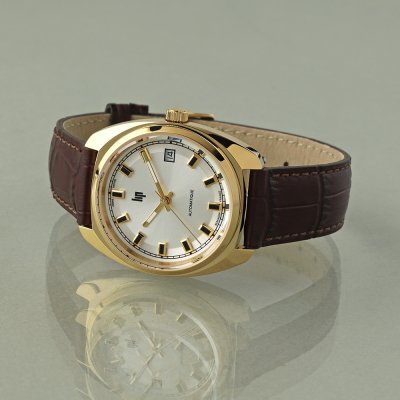 Diese LIP Uhr hat ein Edelstahl Gehäuse mit einem Durchmesser von 35 mm und ist mit einem Armband aus Leder versehen. In der Uhr arbeitet ein Miyota Uhrwerk. Das Glas der Uhr besteht aus Einfaches reflektionsfreies Saphirglas - Glas.