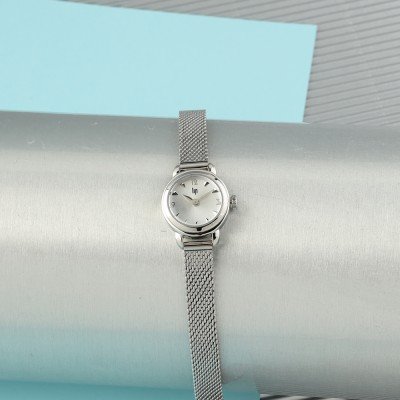 Diese LIP Uhr hat ein Edelstahl Gehäuse mit einem Durchmesser von 19 mm und ist mit einem Armband aus Edelstahl versehen. In der Uhr arbeitet ein Ronda Uhrwerk. Das Glas der Uhr besteht aus Mineral - Glas.