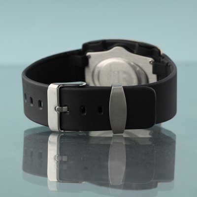 Diese Lorus Uhr hat ein Kunststoff / Harz Gehäuse mit einem Durchmesser von 40 mm und ist mit einem Armband aus Kunstharz versehen. In der Uhr arbeitet ein Seiko Instruments Inc. Uhrwerk. Das Glas der Uhr besteht aus Acryl - Glas.