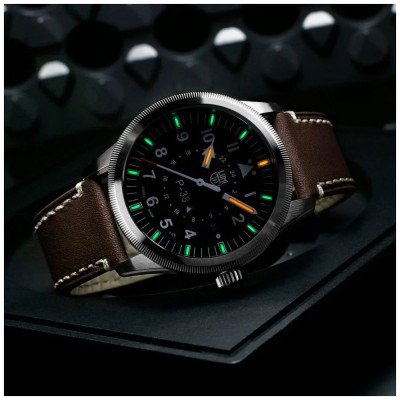 Diese Luminox Uhr hat ein Edelstahl Gehäuse mit einem Durchmesser von 42 mm und ist mit einem Armband aus Leder versehen. In der Uhr arbeitet ein Ronda Uhrwerk. Das Glas der Uhr besteht aus Mineral - Glas.