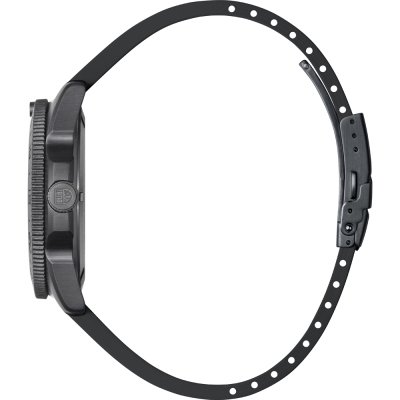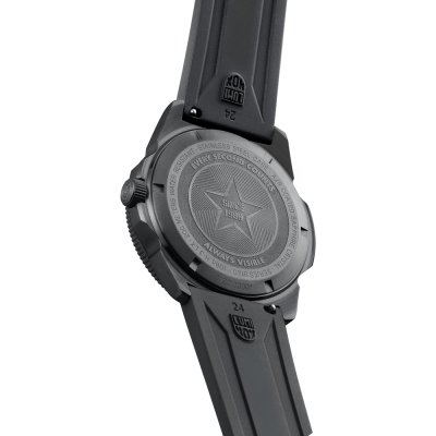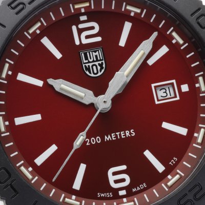 Diese Luminox Uhr hat ein Edelstahl Gehäuse mit einem Durchmesser von 44 mm und ist mit einem Armband aus Kautschuk versehen. In der Uhr arbeitet ein Ronda Uhrwerk. Das Glas der Uhr besteht aus Sapphir - Glas.