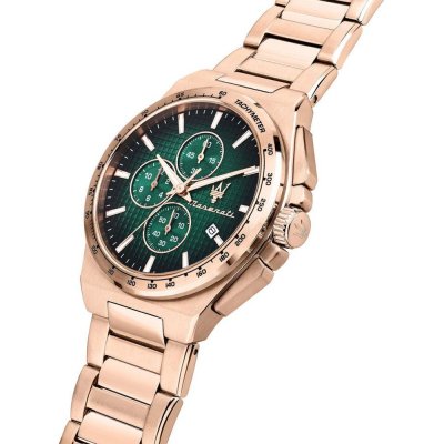 Diese Maserati Uhr hat ein Edelstahl Gehäuse mit einem Durchmesser von 41 mm und ist mit einem Armband aus Edelstahl versehen. In der Uhr arbeitet ein Miyota Uhrwerk. Das Glas der Uhr besteht aus Mineral - Glas.