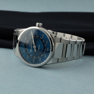 Der Name "Kaenos" dieser neuen Uhr im Meistersinger-Universum leitet sich vom griechischen Wort "kainos" ab, was "neu" oder "frisch" bedeutet, und bezieht sich auf das Känozoikum - eine Ära der Erneuerung in der Entwicklung des Planeten Erde. Das Zifferblatt der Uhr besteht aus zwei Schichten: Die Ziffern und Stundenmarkierungen sind ausgestanzt und geben den Blick auf die darunter liegende Schicht frei, die mit Leuchtmasse beschichtet ist. Darunter befindet sich eine weitere Schicht, die aus einer offenen Datumsscheibe besteht, deren Datum unterhalb der 12-Uhr-Position abgelesen werden kann. Diese doppelte Schichtstruktur erzeugt einen dreidimensionalen Effekt und sorgt gleichzeitig für eine hohe Klarheit und hervorragende Ablesbarkeit, sowohl bei Sonnenschein als auch in der Nacht. Das feine Sonnenschliff-Finish erzeugt je nach Lichteinfall ein faszinierendes Wechselspiel der Farben. Der neu gestaltete, markante bleistiftförmige Zeiger ist ebenfalls mit Leuchtmasse beschichtet, was seine Ablesbarkeit weiter verbessert. Angetrieben wird die Uhr von einem Schweizer Sellita SW200-Uhrwerk mit einer Gangreserve von 38 Stunden, das durch den transparenten Glasboden bewundert werden kann. Für dieses herausragende Design erhielt Meistersinger für die Kaenos den renommierten iF Design Award 2025.