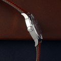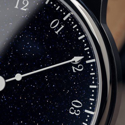 Seit 2004 bringt Meistersinger jedes Jahr eine exklusive niederländische Edition heraus. Die diesjährige, auf nur 50 Exemplare limitierte Ausgabe kombiniert das klassische Meistersinger N°03-Gehäuse mit einem echten Aventurin-Zifferblatt. Zwei Dinge sind an dieser Uhr bemerkenswert: Mit 43 mm hat das Gehäuse die gleiche Form, ist aber größer als das normale N°03-Gehäuse. Und das Zifferblatt ist aus natürlich geformtem Aventurin gefertigt. In der Uhrenwelt wird der Name "Aventurin" gewöhnlich für ein funkelndes, synthetisch hergestelltes Material verwendet, das dem echten Stein optisch ähnelt. Da es sich bei dem Stein um ein Naturprodukt handelt, ist jedes Zifferblatt in seiner Struktur und seinem Glanz einzigartig. Alle Uhren sind auf dem Boden des Ausstellungsgehäuses nummeriert. Diese Uhr ist die Nummer 17/50.