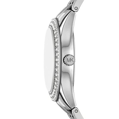Diese Michael Kors Uhr hat ein Edelstahl Gehäuse mit einem Durchmesser von 33 mm und ist mit einem Armband aus Edelstahl versehen. In der Uhr arbeitet ein Miyota Uhrwerk. Das Glas der Uhr besteht aus Mineral - Glas.