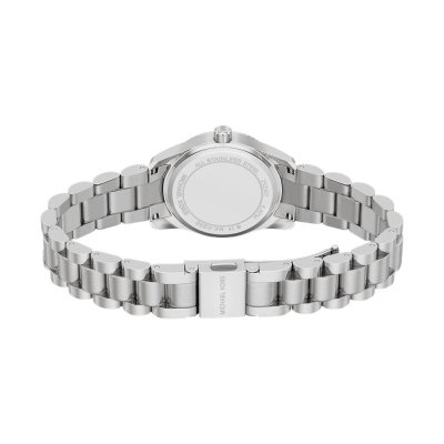Diese Michael Kors Uhr hat ein Edelstahl Gehäuse mit einem Durchmesser von 26 mm und ist mit einem Armband aus Edelstahl versehen. In der Uhr arbeitet ein Seiko Instruments Inc. Uhrwerk. Das Glas der Uhr besteht aus Mineral - Glas.