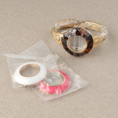 New Old Stock Goldfarbenes Stahlarmband-Gehäuse-Kombination mit 3 Lünetten (weiß, Pink Turtle)