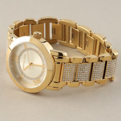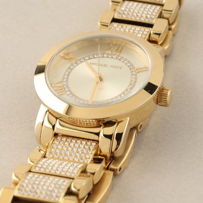 Diese Michael Kors Uhr hat ein Edelstahl Gehäuse mit einem Durchmesser von 33 mm und ist mit einem Armband aus Metall versehen. In der Uhr arbeitet ein Miyota Uhrwerk. Das Glas der Uhr besteht aus Mineral - Glas.
