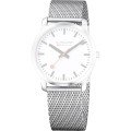 Dieses Mondaine Uhrarmband ist aus edelstahl gefertigt und wird mit quick release Federsteg an der Uhr befestigt. Das Band hat eine Breite von 22 mm und wird mit einer mailänder schließe geschlossen. Das Band hat eine gerade Halterung, was bedeutet, dass dieses Band für alle Mondaineuhren mit einer geraden Halterung geeignet ist.