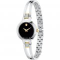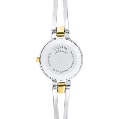 Diese Movado Uhr hat ein Edelstahl Gehäuse mit einem Durchmesser von 24 mm und ist mit einem Armband aus Edelstahl versehen. In der Uhr arbeitet ein Ronda Uhrwerk. Das Glas der Uhr besteht aus Sapphir - Glas.