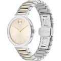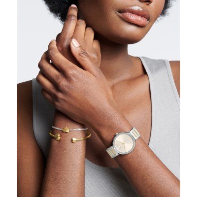 Diese Movado Uhr hat ein Edelstahl Gehäuse mit einem Durchmesser von 34 mm und ist mit einem Armband aus Edelstahl versehen.