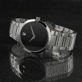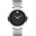 Diese Movado Uhr hat ein Edelstahl Gehäuse mit einem Durchmesser von 39.2 mm und ist mit einem Armband aus Edelstahl versehen. In der Uhr arbeitet ein Ronda Uhrwerk. Das Glas der Uhr besteht aus Sapphir - Glas.
