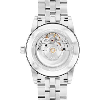 Die Movado Museum Classic hat ein Zifferblatt, das dem ursprünglichen Design sehr nahe kommt. Bei einem so puristischen und minimalistischen Erscheinungsbild ist kein Platz für Nachlässigkeiten. Das matt lackierte Zifferblatt – auf dem nur ein kleines Datumsfenster die Harmonie unterbricht – steht im Kontrast zum charakteristischen Punkt bei 12 Uhr. Die wunderschön gearbeiteten, scharfkantigen Dauphine-Zeiger sorgen für zusätzliche Klarheit und Spannung und zeugen von viel Liebe zum Detail. Die Uhr wird von einem automatischen Schweizer SW200-Uhrwerk mit 38 Stunden Gangreserve angetrieben, das durch den Gehäuseboden sichtbar ist.
