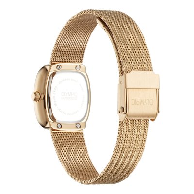 Diese Olympic Uhr hat ein Edelstahl Gehäuse mit einem Durchmesser von 23 mm und ist mit einem Armband aus Edelstahl versehen. In der Uhr arbeitet ein Miyota Uhrwerk. Das Glas der Uhr besteht aus Sapphir - Glas.