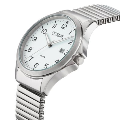 Diese Olympic Uhr hat ein Edelstahl Gehäuse mit einem Durchmesser von 40 mm und ist mit einem Armband aus Edelstahl versehen. In der Uhr arbeitet ein Miyota Uhrwerk. Das Glas der Uhr besteht aus Mineral - Glas.