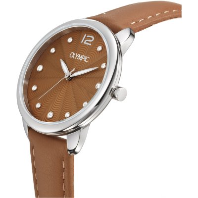 Diese Olympic Uhr hat ein Edelstahl Gehäuse mit einem Durchmesser von 31 mm und ist mit einem Armband aus Leder versehen. In der Uhr arbeitet ein Miyota Uhrwerk. Das Glas der Uhr besteht aus Mineral - Glas.