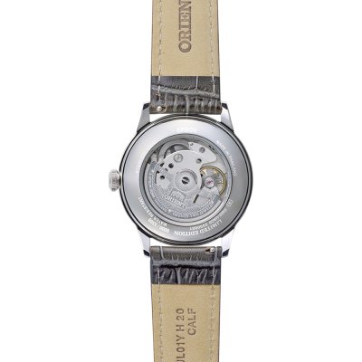 Diese Orient Uhr hat ein Edelstahl Gehäuse mit einem Durchmesser von 38 mm und ist mit einem Armband aus Leder versehen. In der Uhr arbeitet ein Epson Uhrwerk. Das Glas der Uhr besteht aus Mineral - Glas.