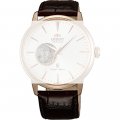 Dieses Orient Uhrarmband ist aus leder gefertigt und wird mit druckstifte an der Uhr befestigt. Das Band hat eine Breite von 22 mm und wird mit einer dornschließe geschlossen. Das Band hat eine gerade Halterung, was bedeutet, dass dieses Band für alle Orientuhren mit einer geraden Halterung geeignet ist.